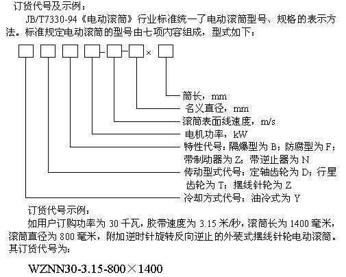 (1).因目前外裝式電動滾筒尚未制定相關(guān)行業(yè)標(biāo)準(zhǔn),本廠將該型號電動滾筒首位代號用W(“外裝”的首位漢語拼音)表示。外裝式電動滾筒外置電機(jī)可分為立式電機(jī)和臥式電機(jī),用戶訂購時請加以說明;